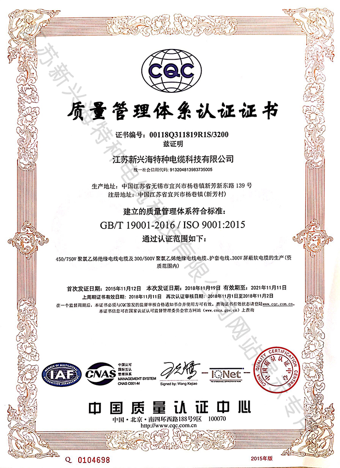 產(chǎn)品質(zhì)量室企業(yè)生存的根本,是命脈。能夠獲得全球前三的美國伊頓公司質(zhì)量獎(jiǎng),是對(duì)新興海特種電纜線纜質(zhì)量 的最好肯定。